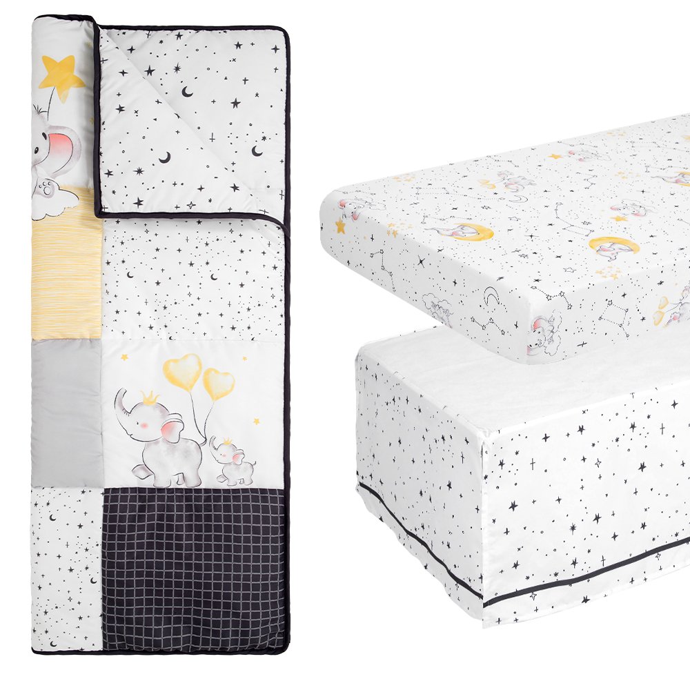 أضيفي لمسة جمالية متناسقة إلى غرفة نوم طفلك مع طقم مفروشات سرير الأطفال المميز المصنوع من البوليستر 100% الذي يتميز بنعومته ومتانته وسهولة الحفاظ عليه. يعد هذا الطقم مثاليًا لإضفاء لمسة من الأناقة والراحة على سرير طفلك.