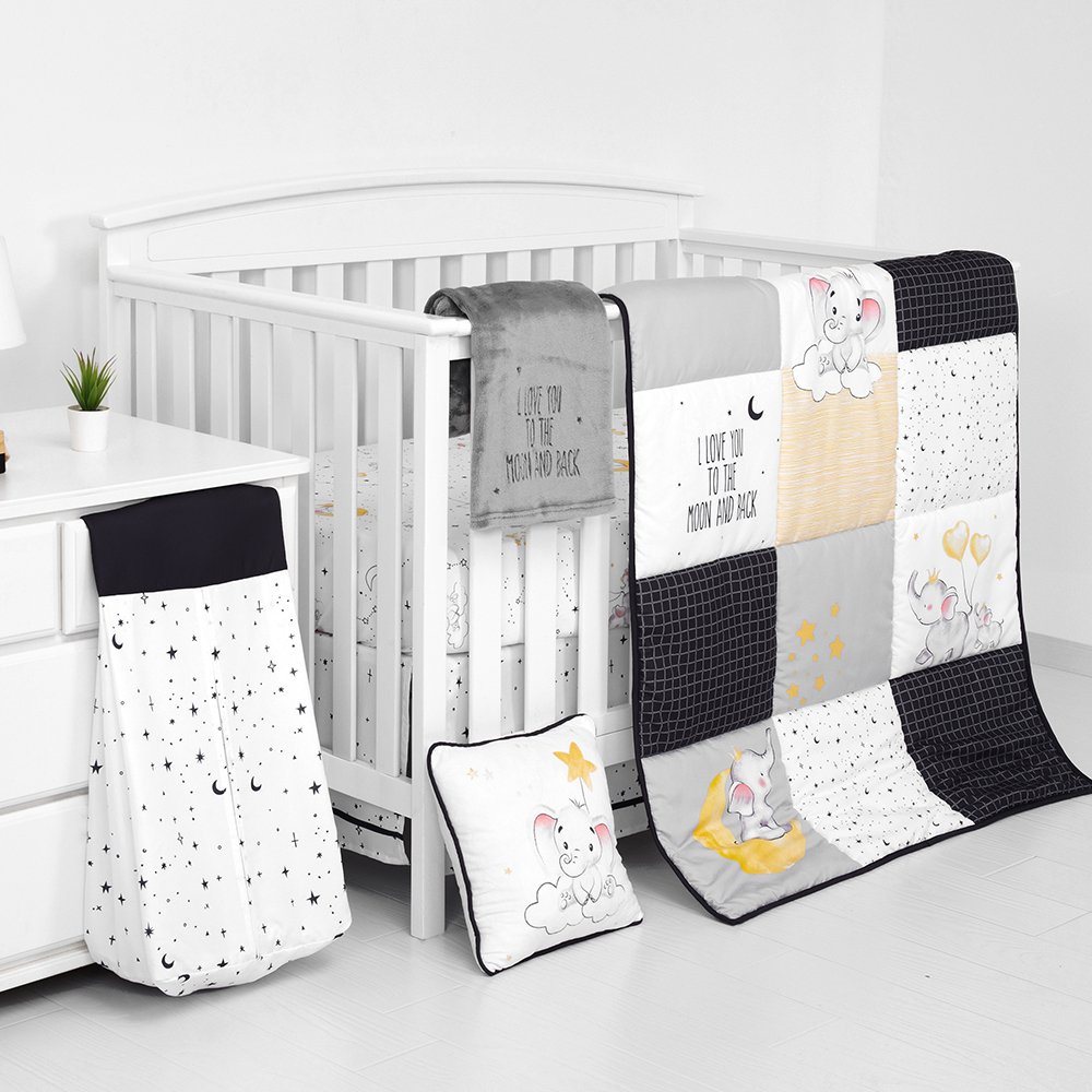 تنورة المهد: تضفي تنورة المهد التي تبلغ أبعادها 68 سم × 129.5 سم × 35.5 سم مظهرًا أنيقًا بينما تغطي أرجل المهد وتخفي مساحة التخزين أسفله. تتناسق طباعته الرقمية بشكل جميل مع اللحاف والملاءة لإضفاء مظهر متناسق على المهد.