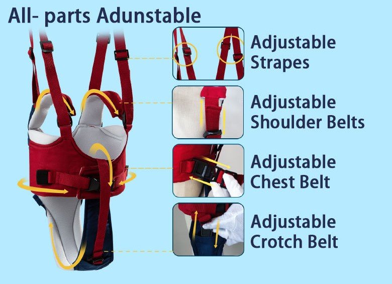 تصميم مضاد للضياع: مزود بنظام حزام آمن وقابل للتعديل، يضمن هذا الحزام بقاء طفلك قريبًا ومحميًا ويمنع أي تجول عرضي.