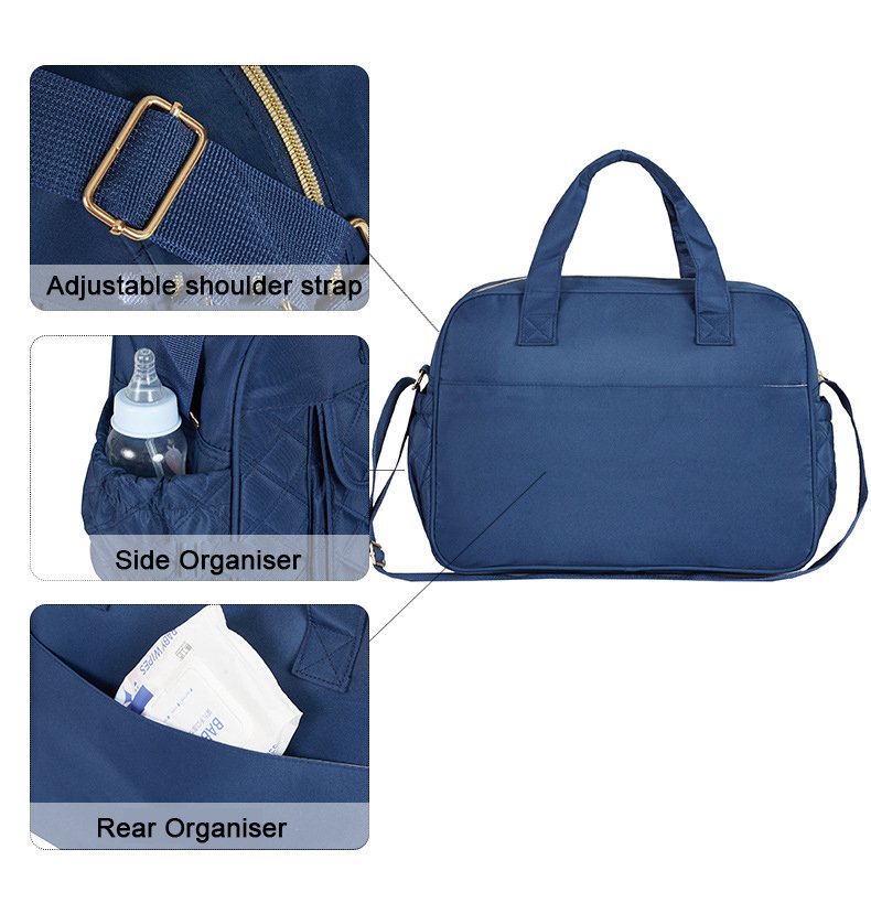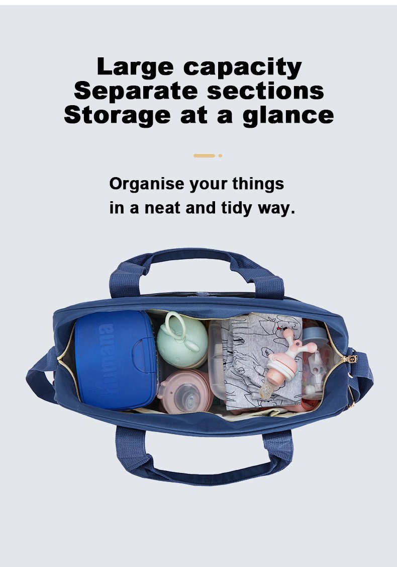 استفيدي من مستلزمات طفلك الأساسية مع حقيبة الحفاضات المعلقة لحضانة الأطفال المصممة لتوفير الراحة والكفاءة. إليك الميزات الرئيسية: