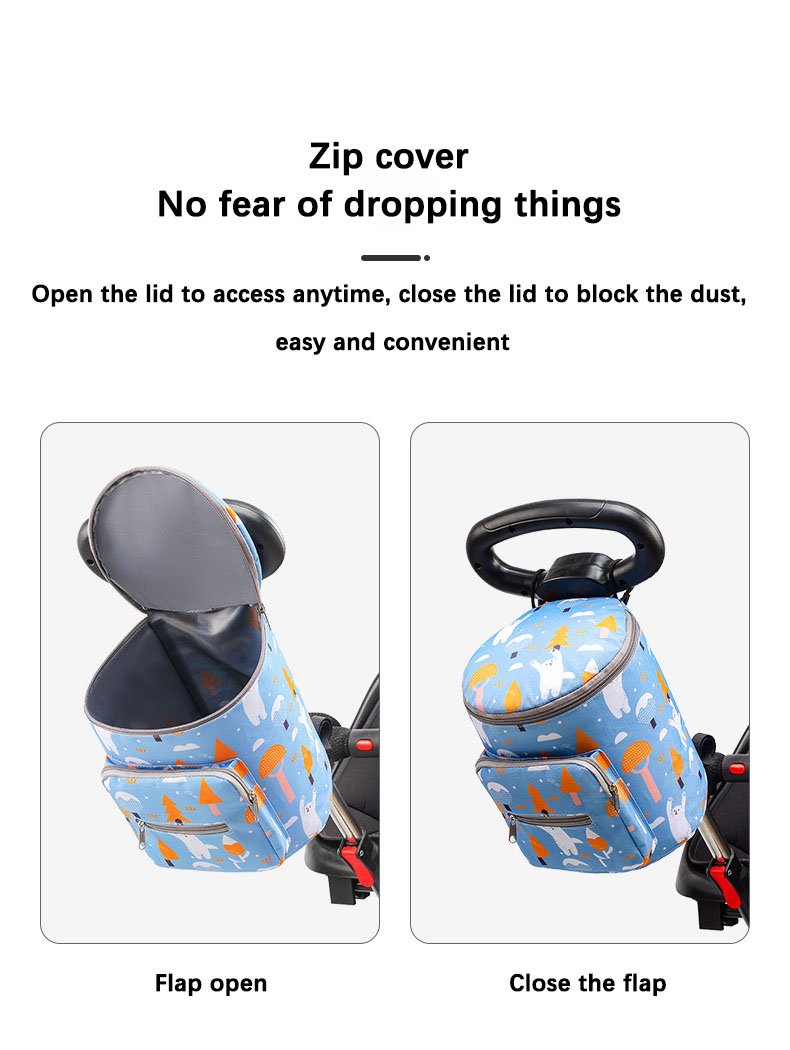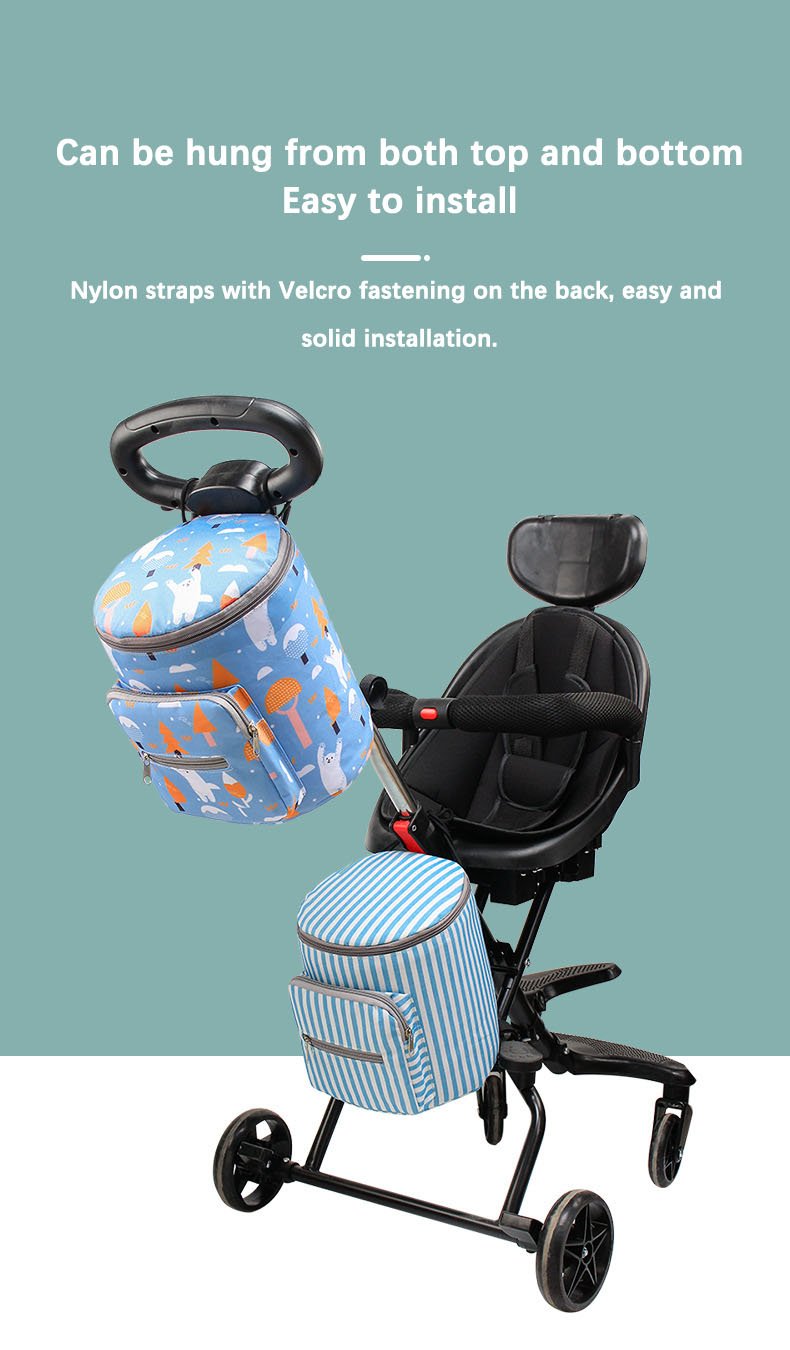 تصميم متعدد الاستخدامات: مصمم خصيصًا ليناسب عربات الأطفال، مع أحزمة قابلة للتعديل لسهولة التثبيت والوصول السريع.