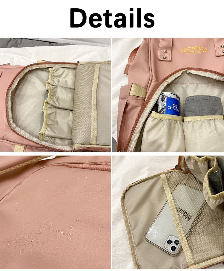 سعة كبيرة: مساحة داخلية واسعة مع مقصورات وجيوب متعددة لتنظيم الحفاضات والمناديل المبللة والرضّاعات وغيرها من مستلزمات الطفل بكفاءة.