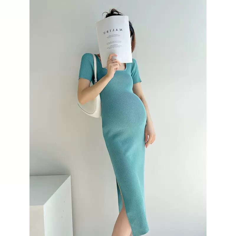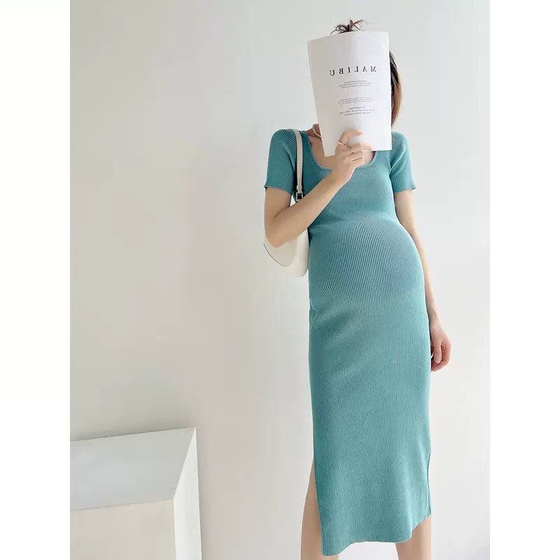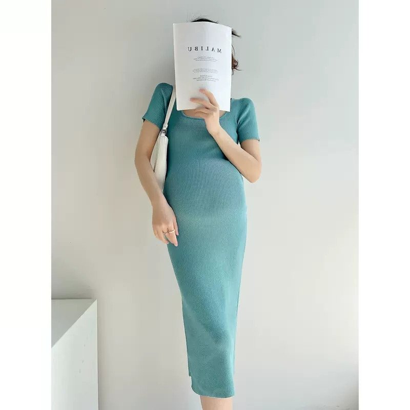 يوفر فستان الحمل الضيق الراحة والأناقة في آن واحد. صُنع من مزيج مسامي من القطن 60% والبوليستر 40%، ويتميز بتصميم يصل إلى الركبة وياقة مربعة وأكمام قصيرة. يضفي لون النعناع المنعش لمسة أنيقة مما يجعله مثاليًا للطقس الأكثر دفئًا.