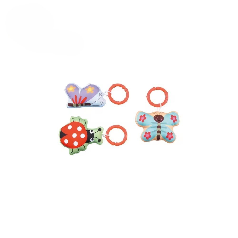 4 ألعاب معلقة: تحتوي على 4 ألعاب معلقة مزودة بأصوات مجعدة وصنابير وخشخيشات لتوفير التحفيز الحسي المتنوع ودعم تنمية المهارات الحركية الدقيقة.