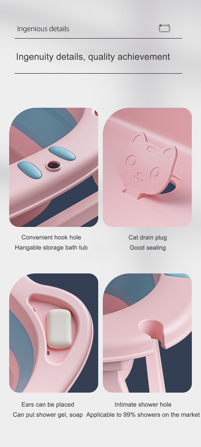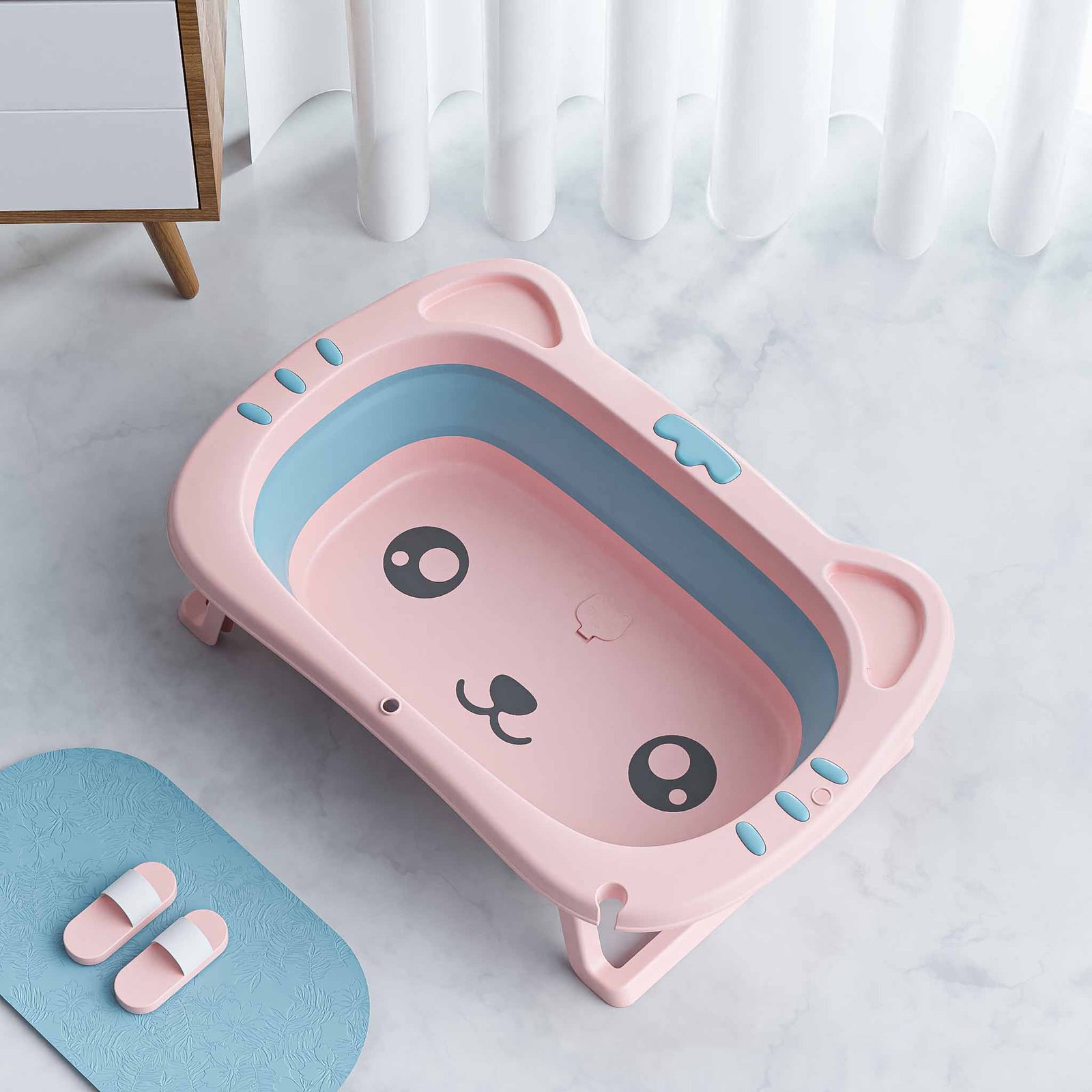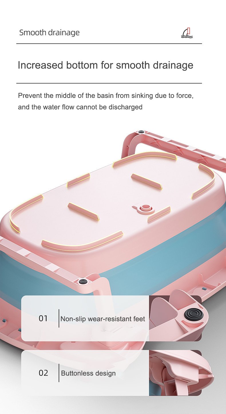 Stable and Non-Slippery: Features a sturdy base that keeps the tub securely in place, with non-slip materials to ensure your child’s safety during bath time.