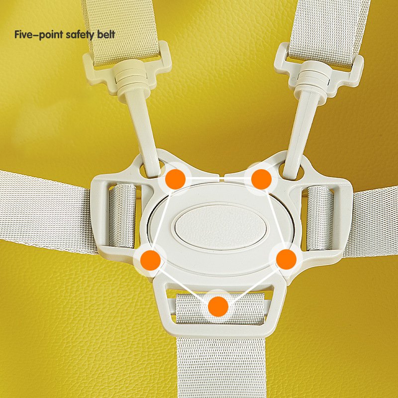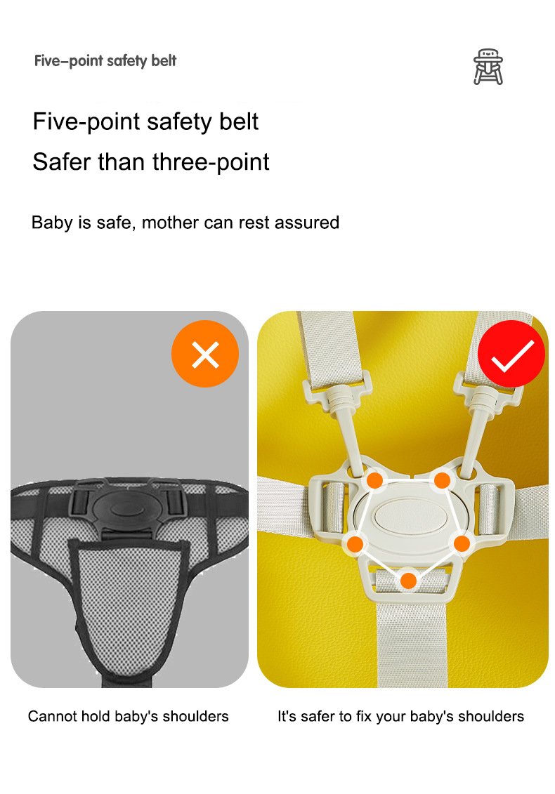 Five-Point Safety Belt: Ensures maximum security during mealtimes.