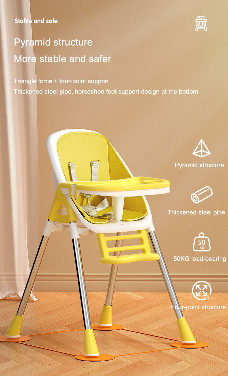 The Chic Foldable Baby Highchair combines style and functionality, designed for modern families with a host of features that ensure safety, comfort, and convenience for your little one: