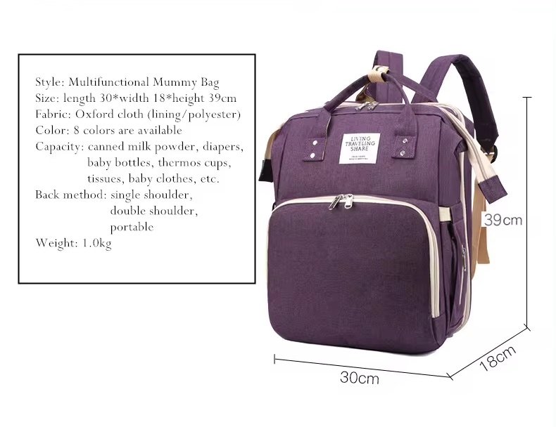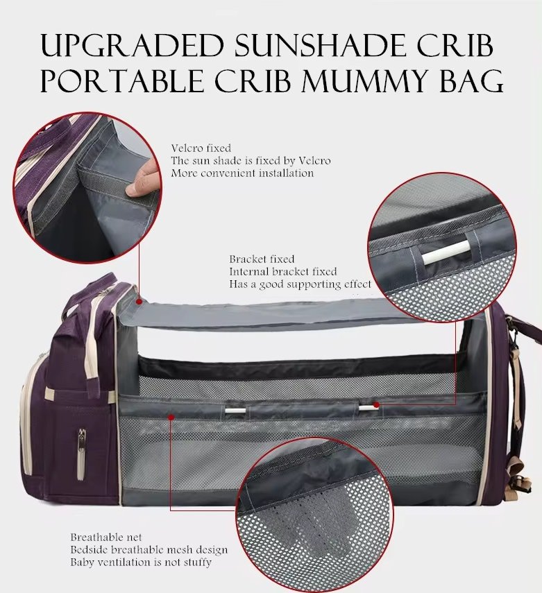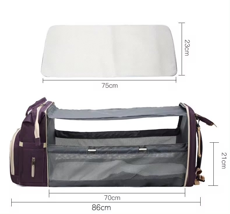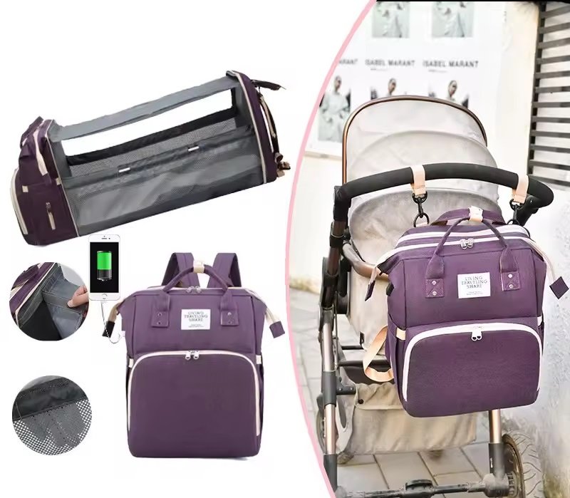 The Multi-Function Mommy Travel Nappy Diaper Bag with Bed Feature is the perfect choice for mothers on the go. It combines practicality and comfort in one stylish design.