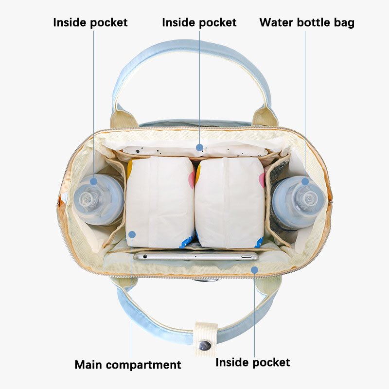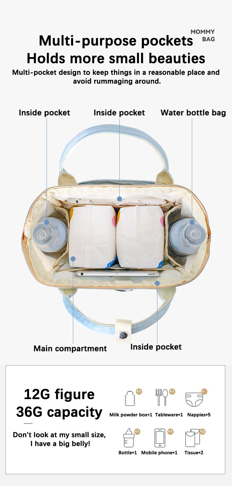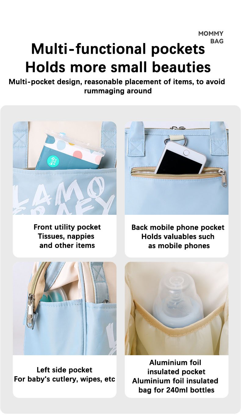 Versatile Design: Includes multiple organized pockets to help you arrange your items efficiently, with dedicated compartments for diapers, wipes, and small clothing.