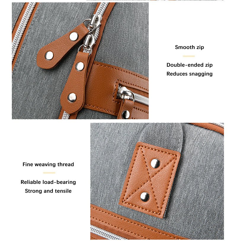 • Large Capacity: Features ample space with multiple pockets and compartments for organized storage of diapers, clothes, towels, and bottles.