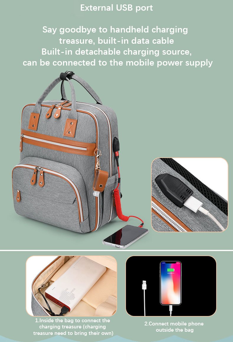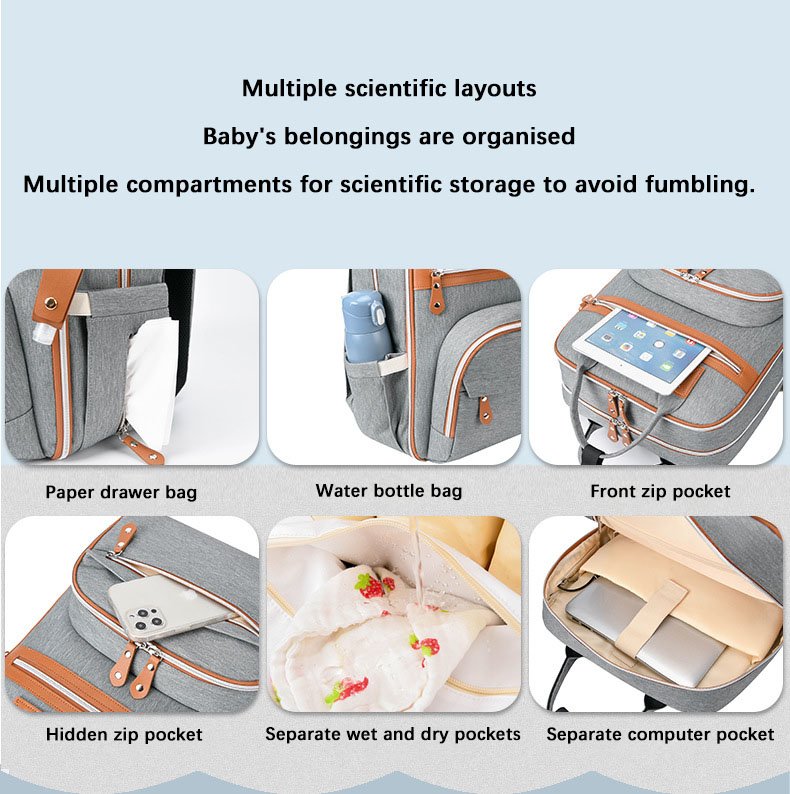 The Waterproof Baby Diaper Backpack Bag combines practicality and style to meet the needs of modern parents. This durable and functional bag offers: