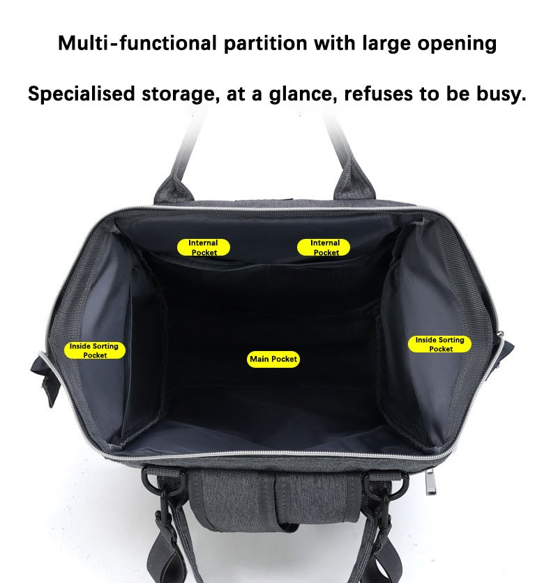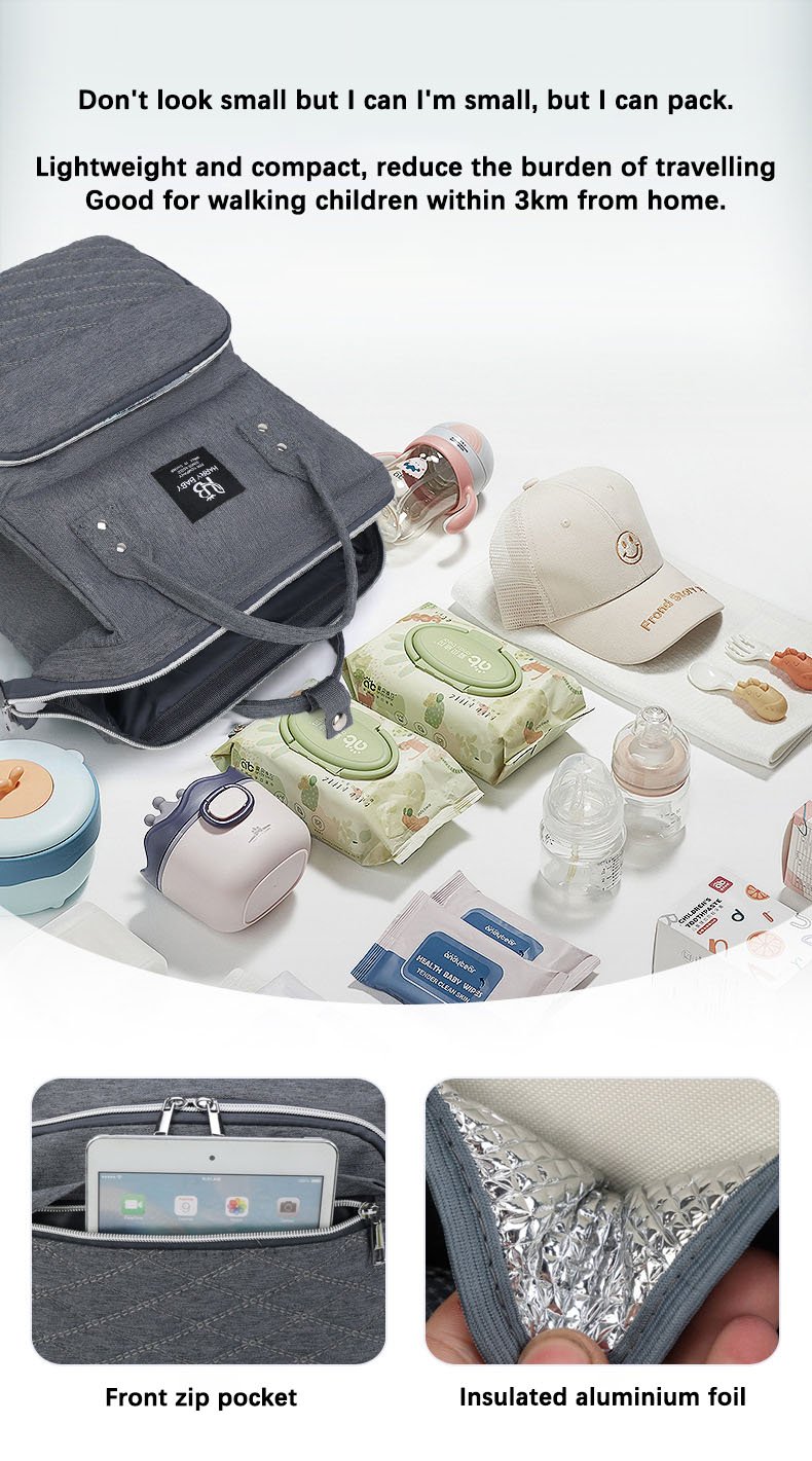 Spacious Design: Generous compartments and pockets to organize diapers, bottles, clothes, and more, ensuring quick access to essentials.