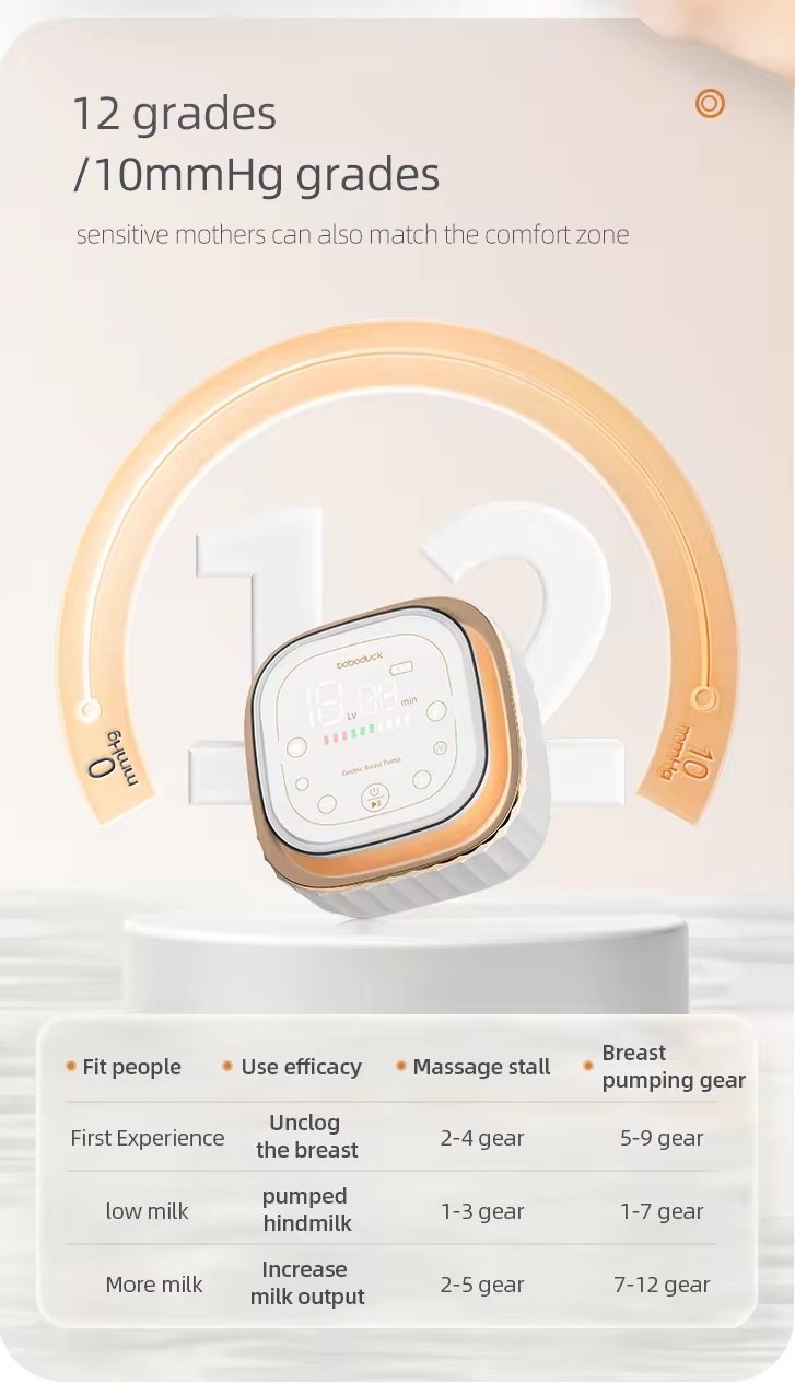 12 levels of breast pumping, delicate suction from gentle to strong