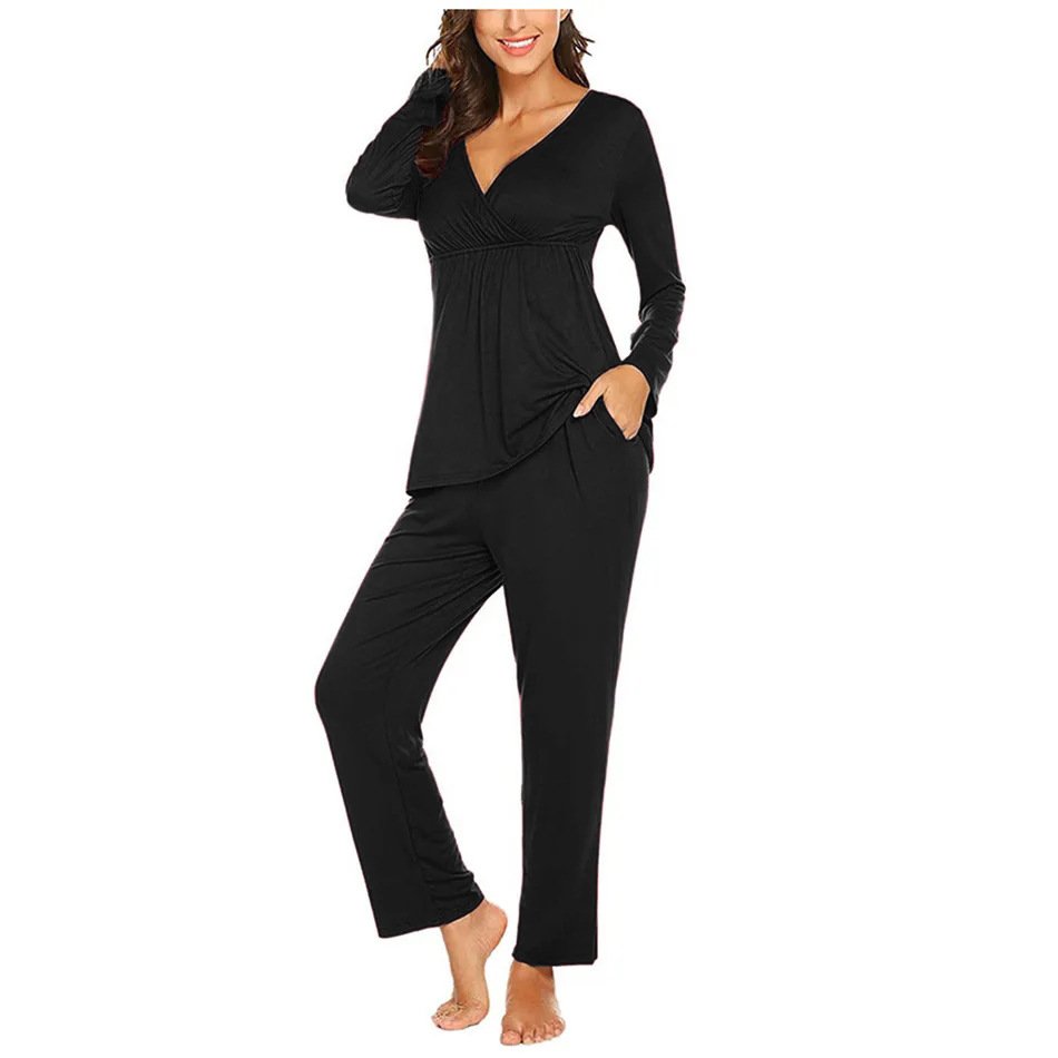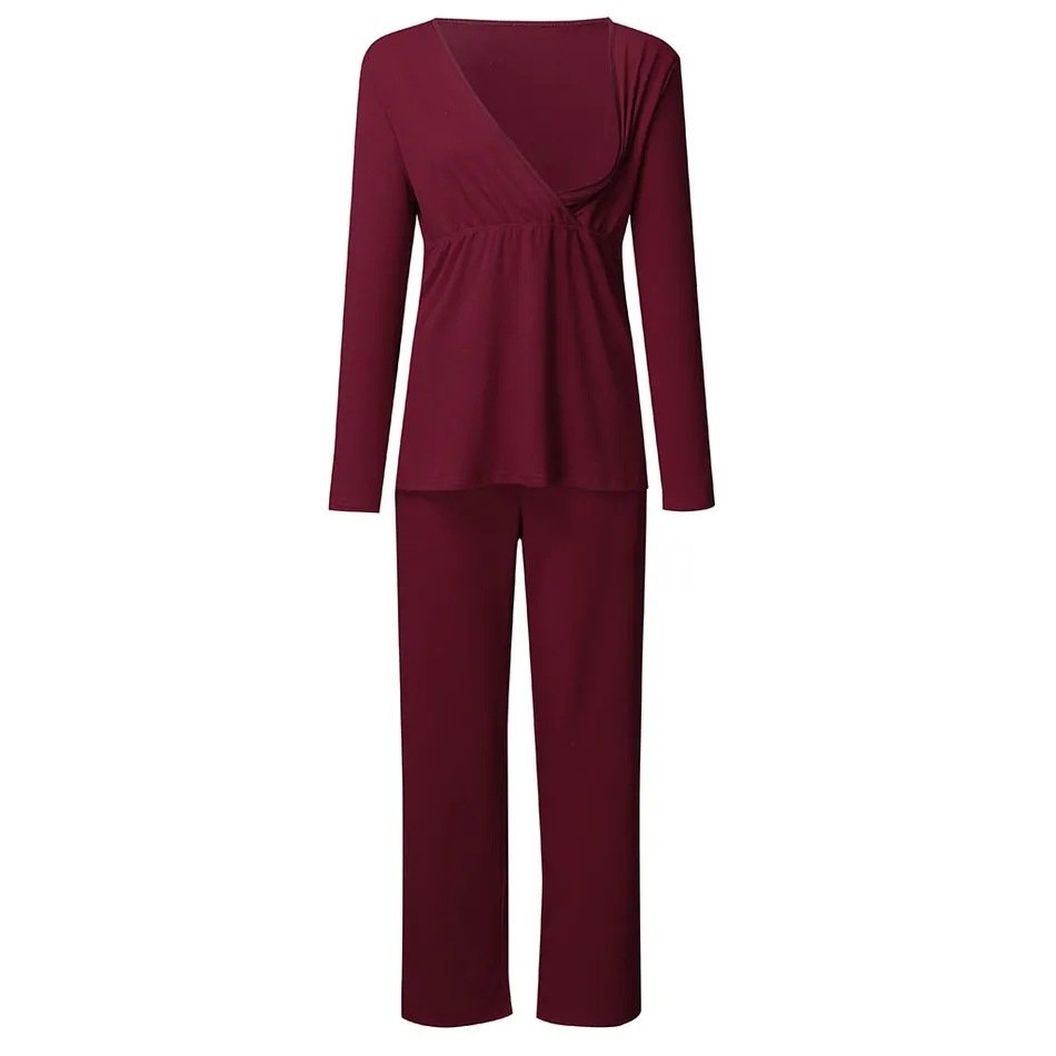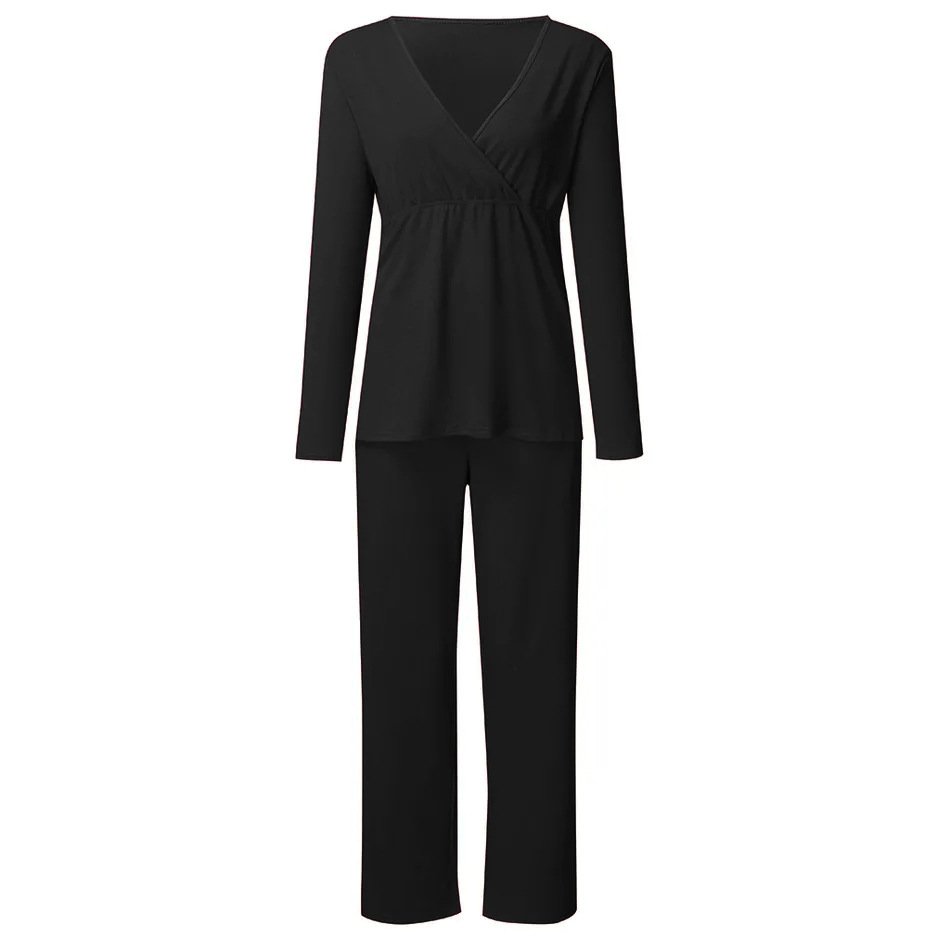Pregnancy Sleepwear Set: Cozy Long Sleeve Top & Pants