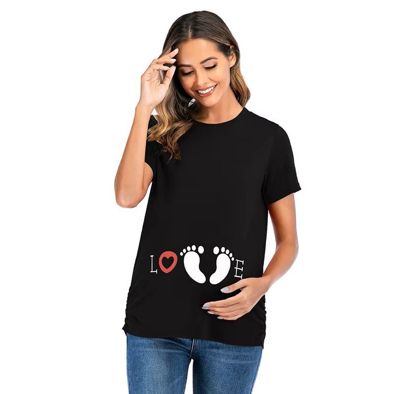 This stylish short sleeve maternity t-shirt is designed for ultimate comfort and versatility. Perfect for expecting moms, it offers a flattering fit while keeping you comfortable throughout the day.