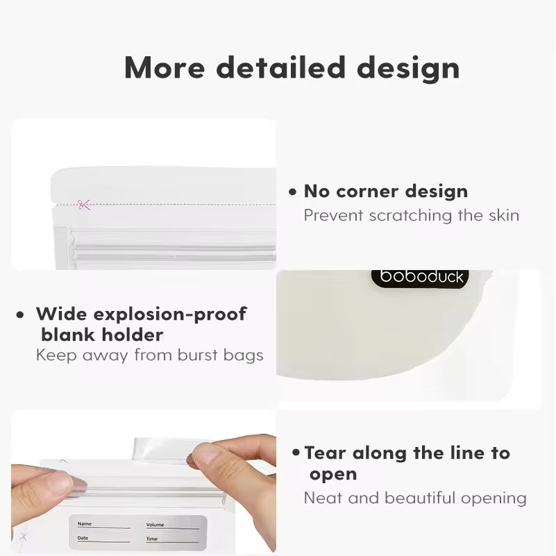 Flat Design: The flat design allows for compact storage in the freezer, making it easier to organize and access your milk supply.