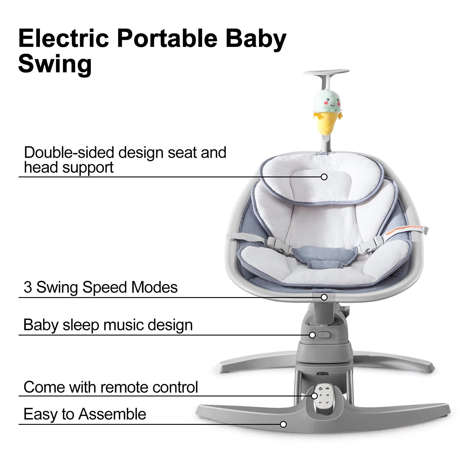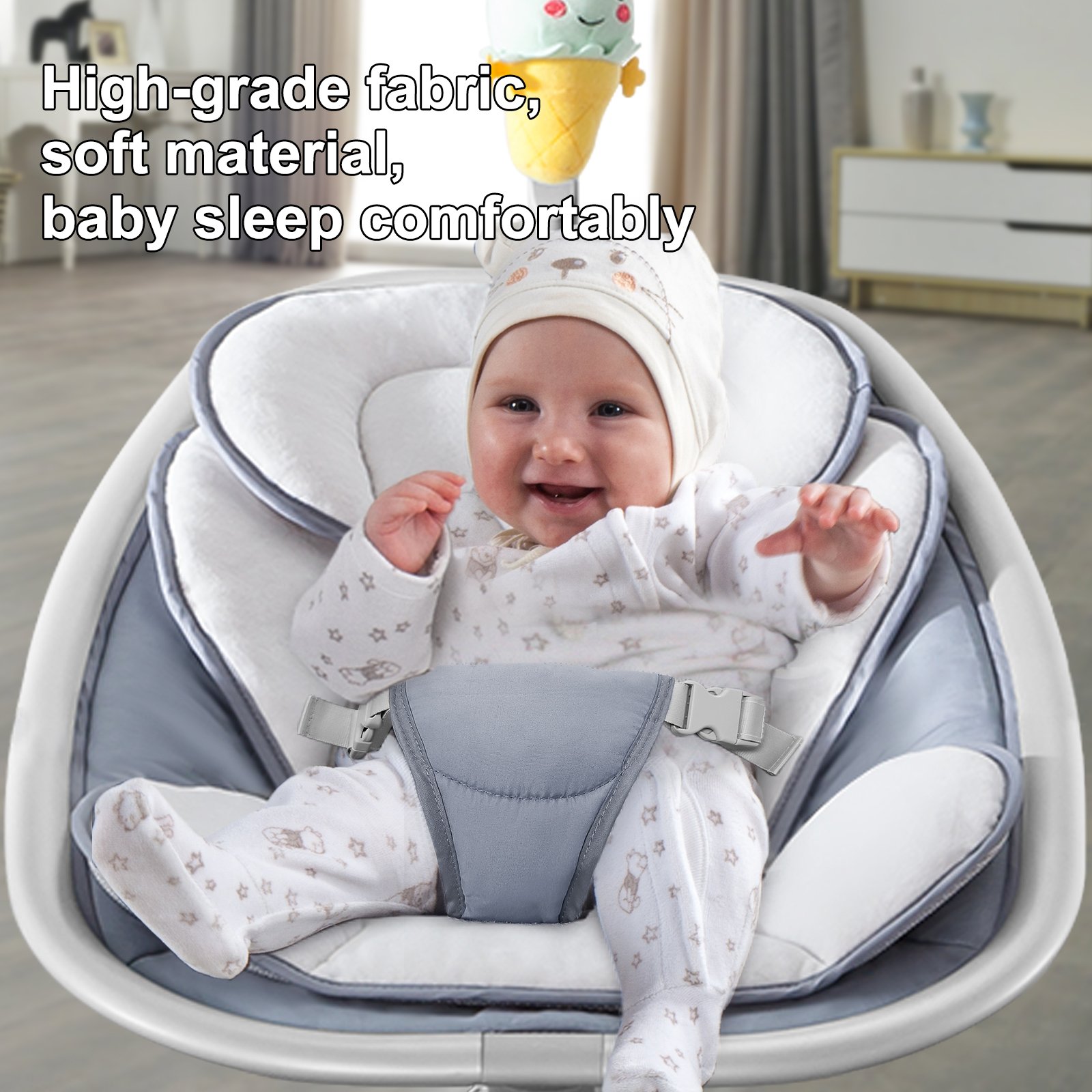 This portable electric rocking chair is the ideal combination of safety, comfort, and functionality, providing a perfect solution for soothing and entertaining your baby.