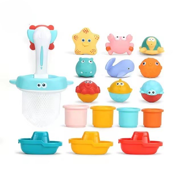 The “17-Piece Floating Bath Toy Set – Fun and Educational Water Play for Kids” is designed to make bath time both entertaining and educational. This set features a variety of colorful and interactive toys, including a multifunctional fishing net that doubles as a basketball hoop, ensuring endless fun and engagement.
