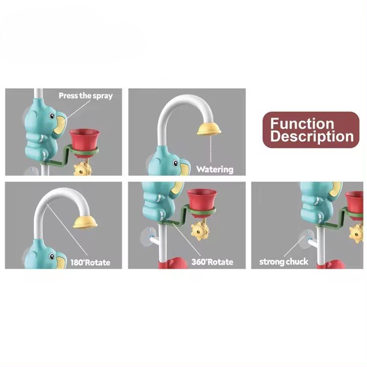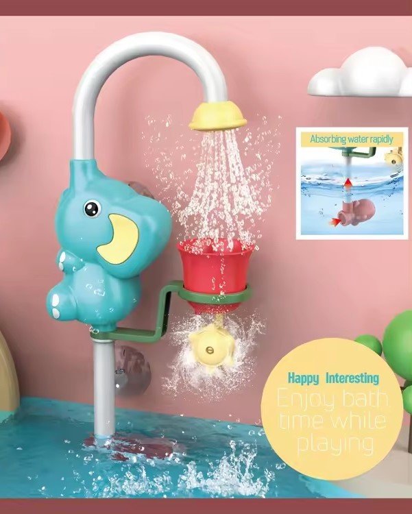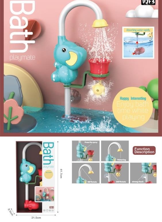 Enhance your childs bath experience with this interactive, elephant-shaped water sprinkler toy, making every bath a splashy adventure.