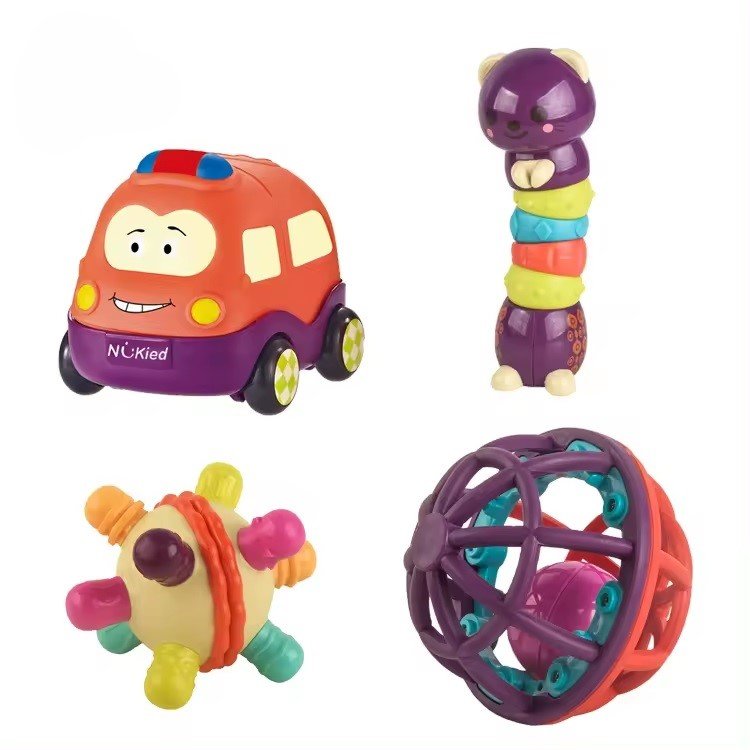 8-Piece Infant Rattle and Sensory Toy Collection: Boost Baby’s Senses provides a diverse set of engaging toys designed to stimulate and develop your baby’s sensory skills.