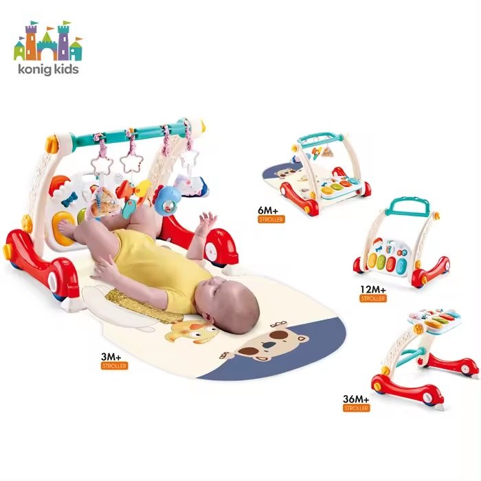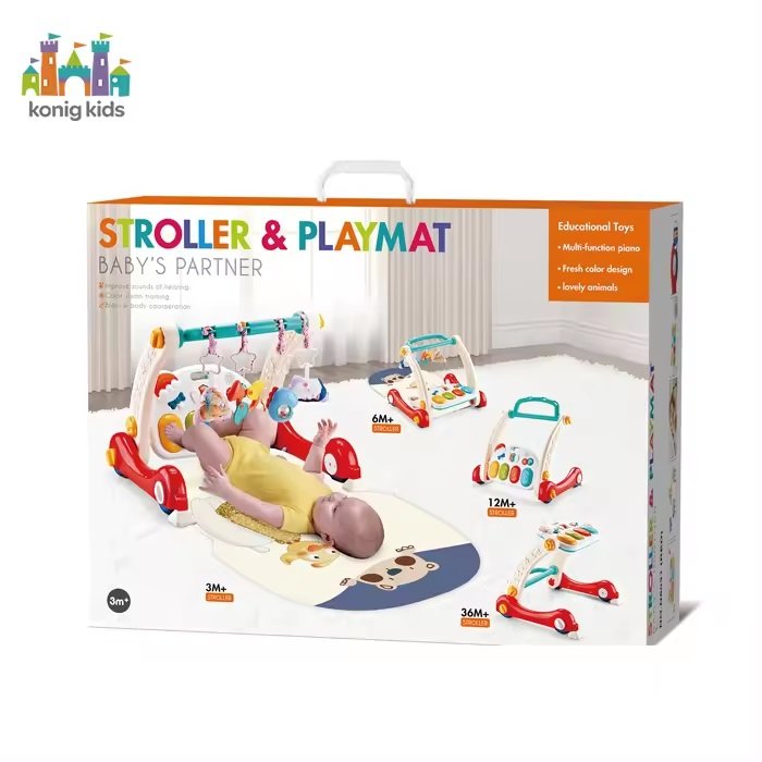 2-in-1 Stroller & Baby Mat: Functions as both a baby walker and an engaging activity mat. The walker easily converts into a large, soft playmat, providing dual-use for both early mobility and interactive play.