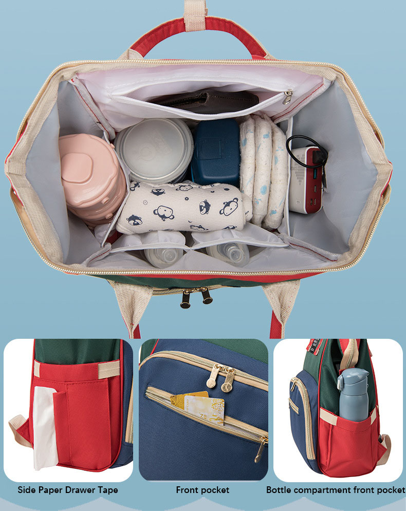 Spacious Design: Offers ample storage with multiple compartments to keep diapers, wipes, bottles, and other essentials organized and easily accessible.