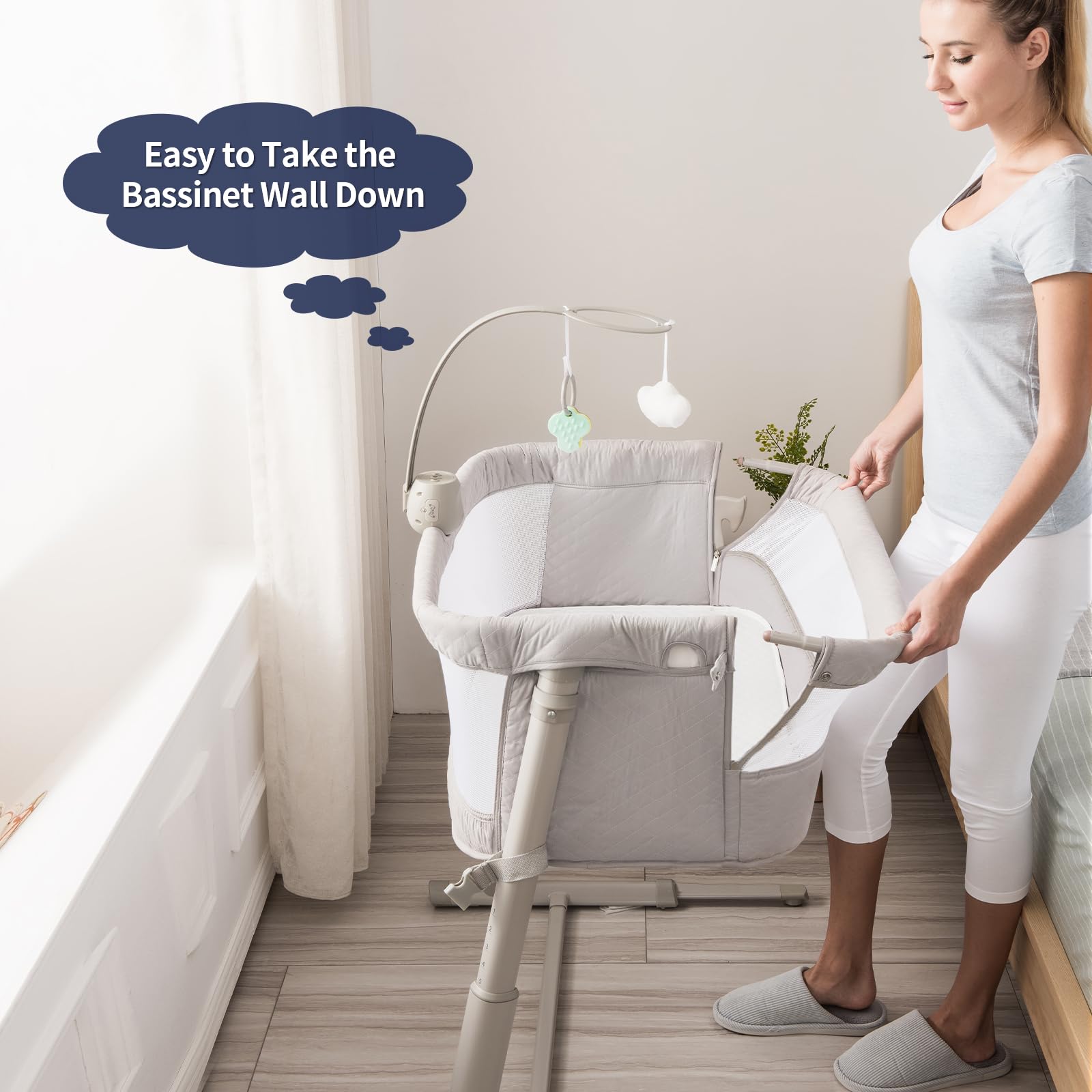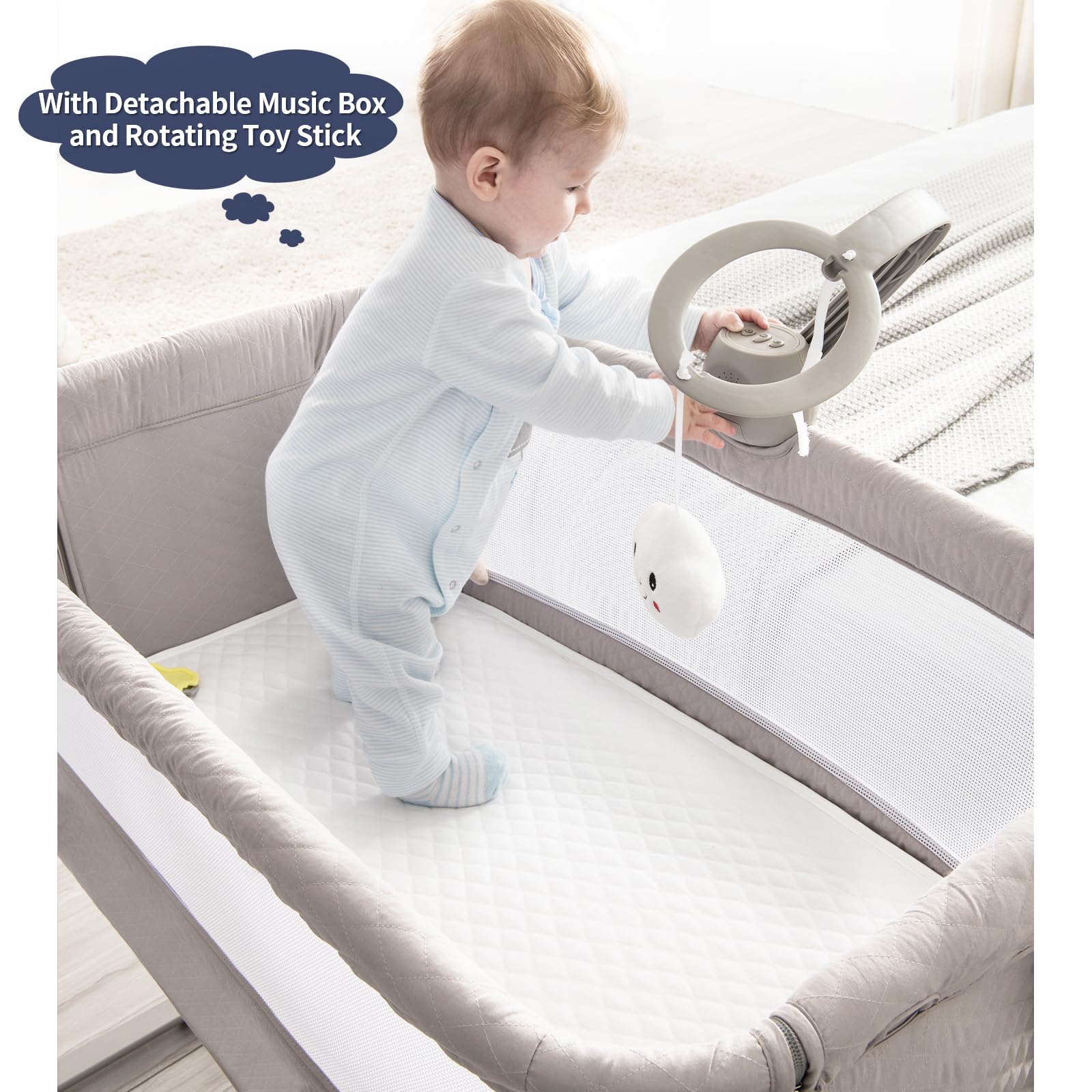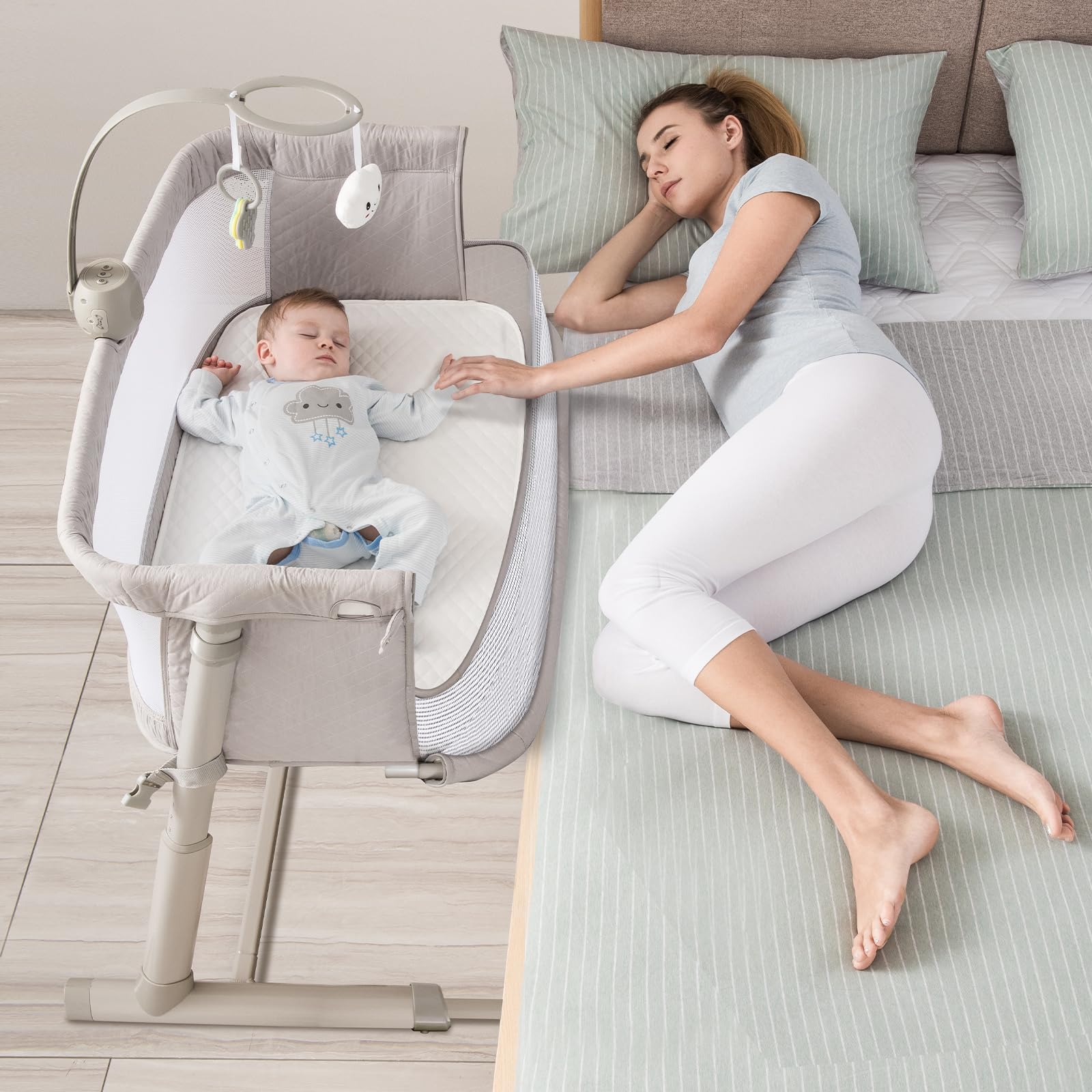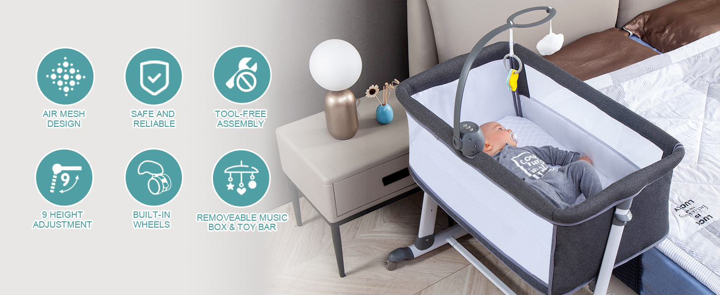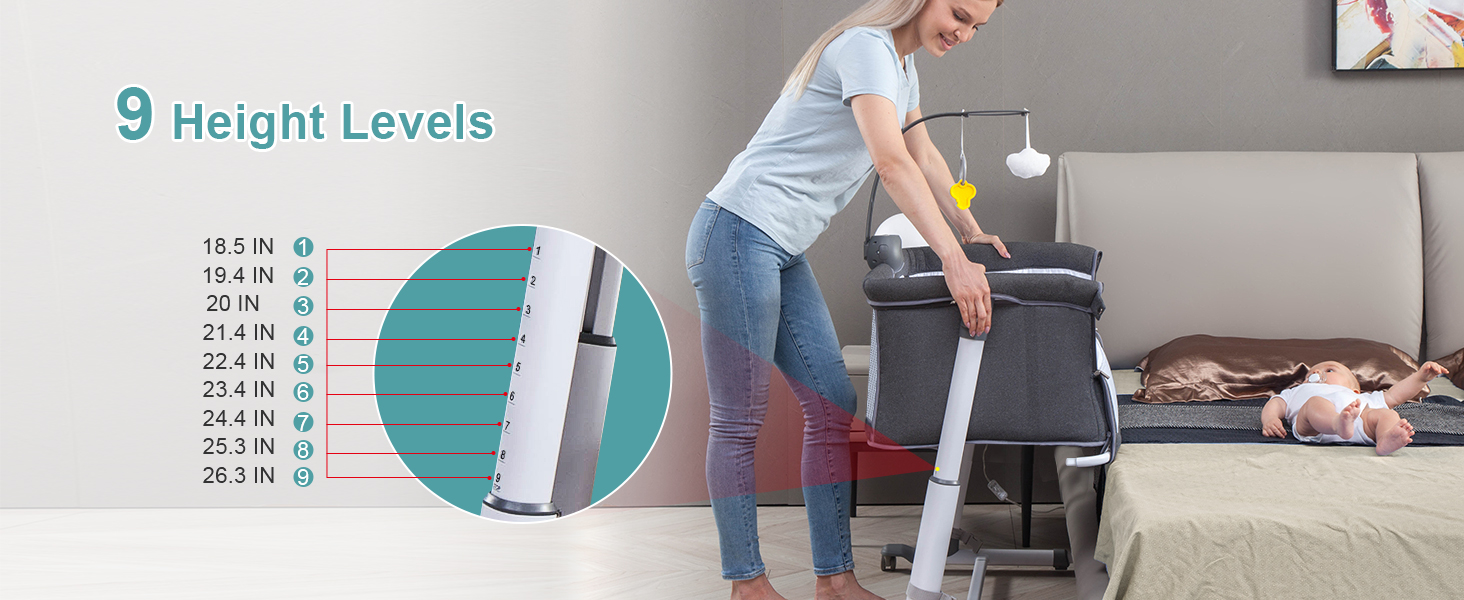 Baby bassinet bedside sleeper with 9 adjustable heights & music Box